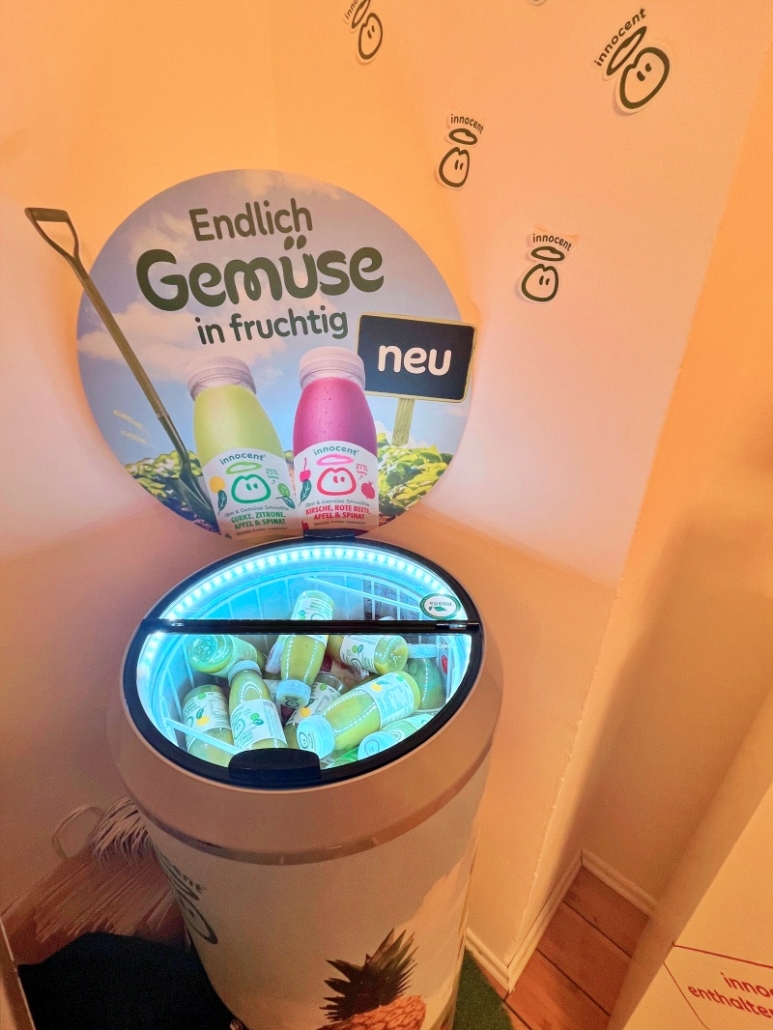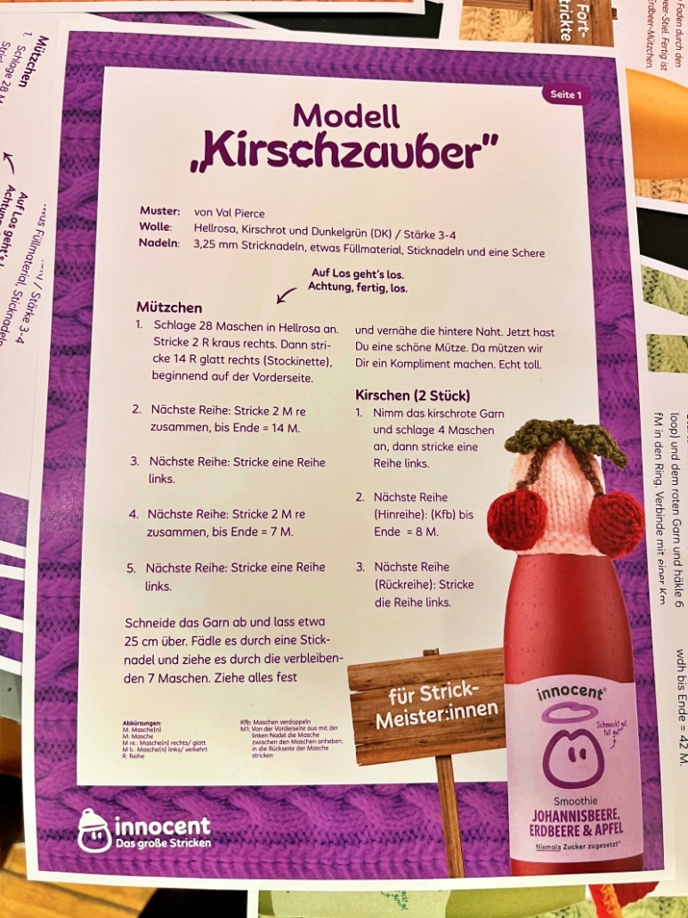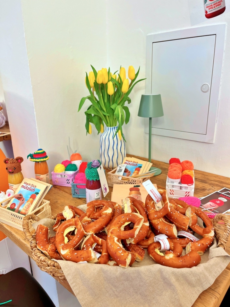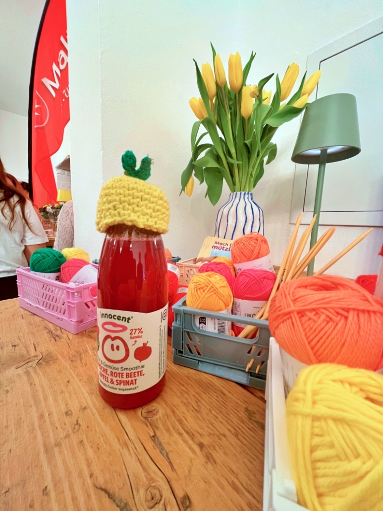 Gemeinsam ist eine gute Masche. Die Aktion „Mach dich mützlich“ von innocent fand im Februar 2026 als Pop-Up-Event in München statt und wurde gemeinsam mit den Maltesern organisiert. Ehrenamtlich gestrickte Mützchen schmückten die Smoothie-Flaschen; für jedes verkaufte Fläschchen spendete innocent einen Betrag an die Malteser. Mit dem Geld wurden Obst und Gemüse an bedürftige Menschen verteilt
